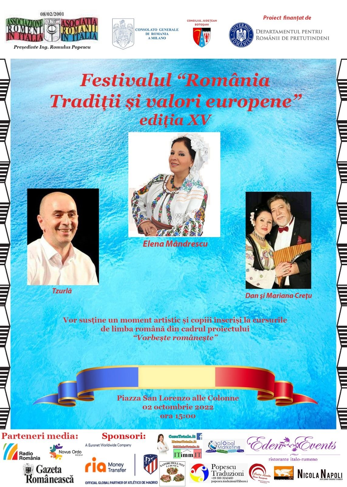Organizat de către Asociația Românii din Italia, Consiliul Județean Botoșani, Departamentul pentru Românii de Pretutindeni și Consulatul General al României la Milano, în data de 02 Octombrie 2022,